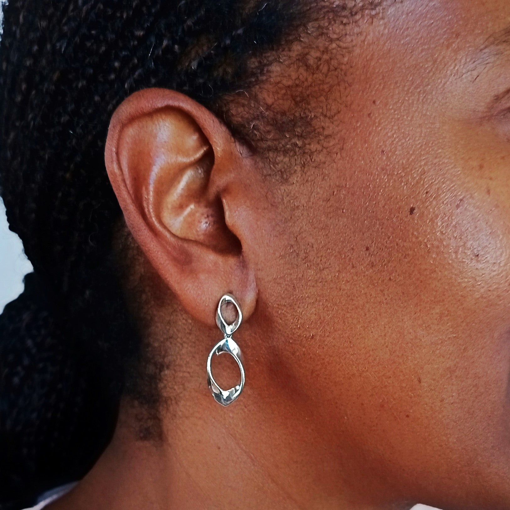 Aretes de plata 925, diseño curvo Moebius, ideal para un reunión , o salida.