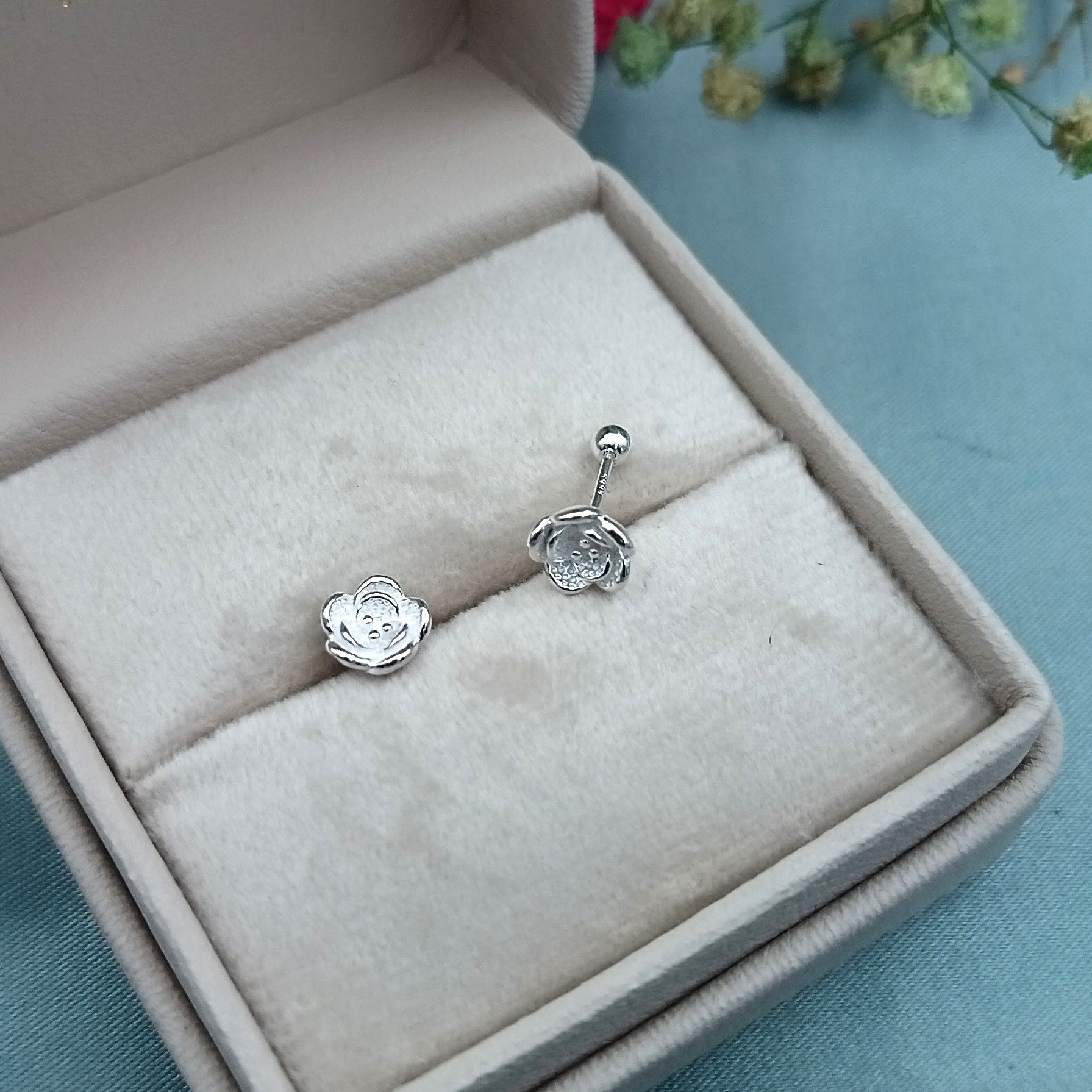 Aretes de plata 925, diseño de rosa, ideal para niñas o de uso diario para adultas.