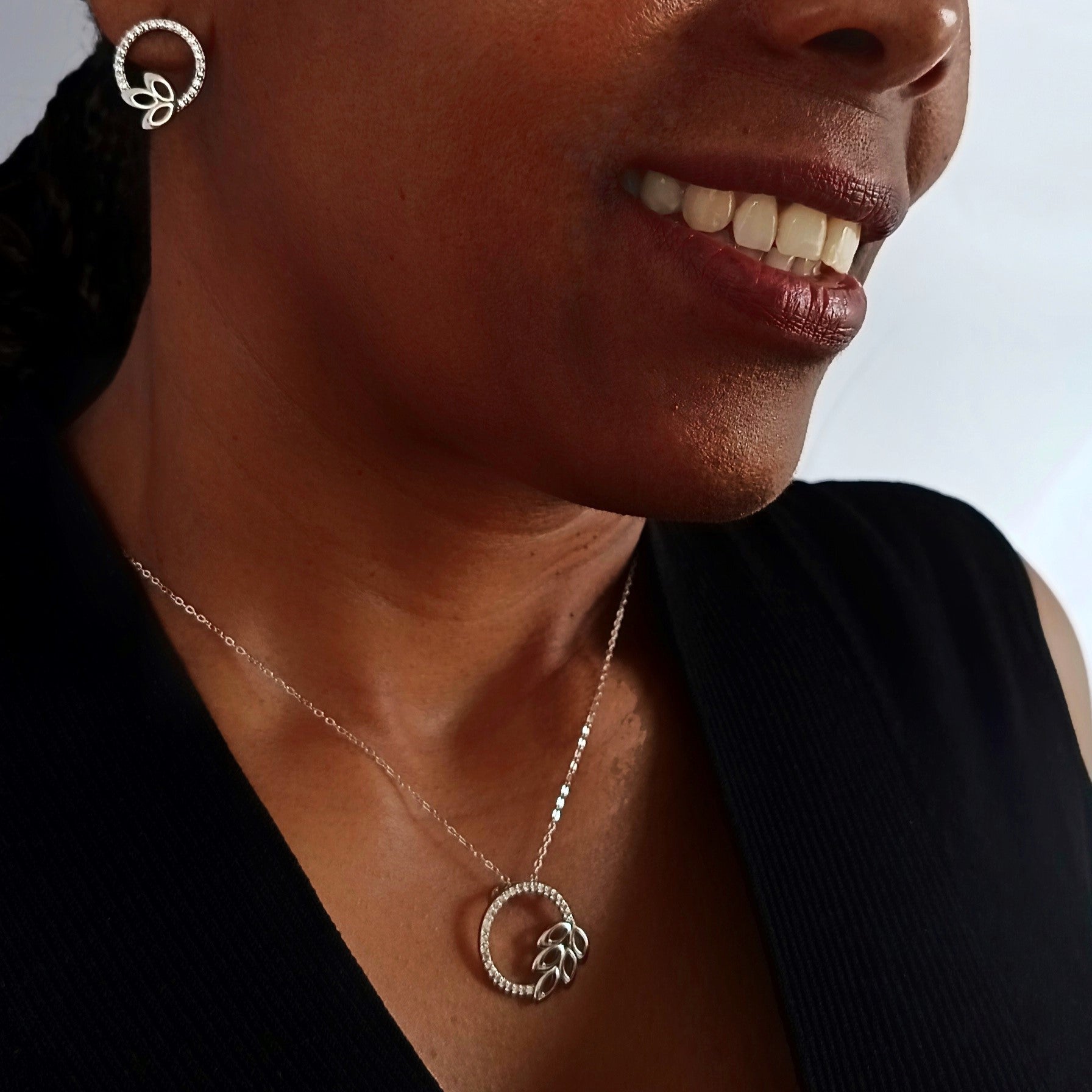 Conjunto de aretes y dije de en plata 925 con circones, combinable con todo tipo de outfit (Incluye cadena).