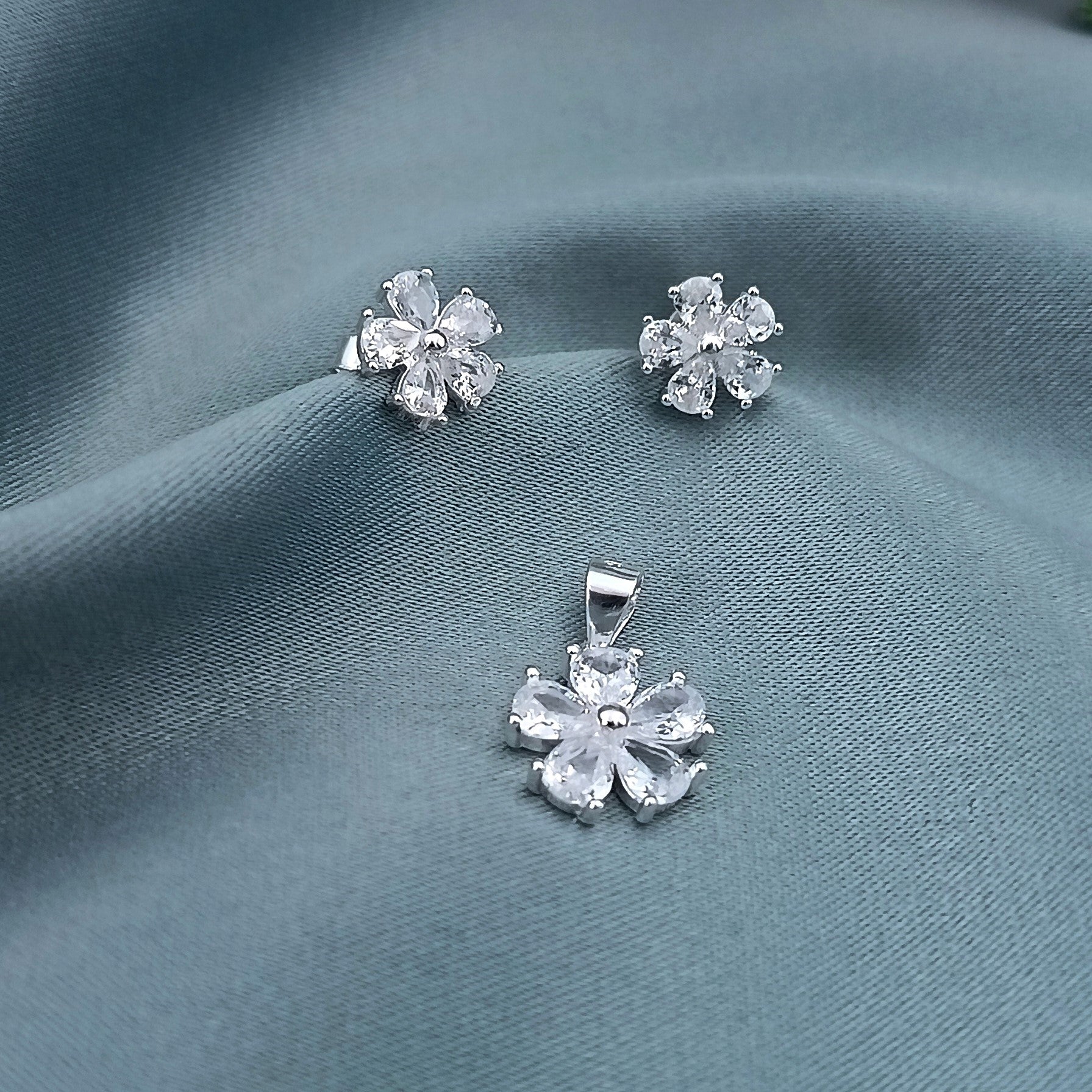 Conjunto de aretes y dije de plata 925. Significado de vida, belleza, amor, energía femenina.