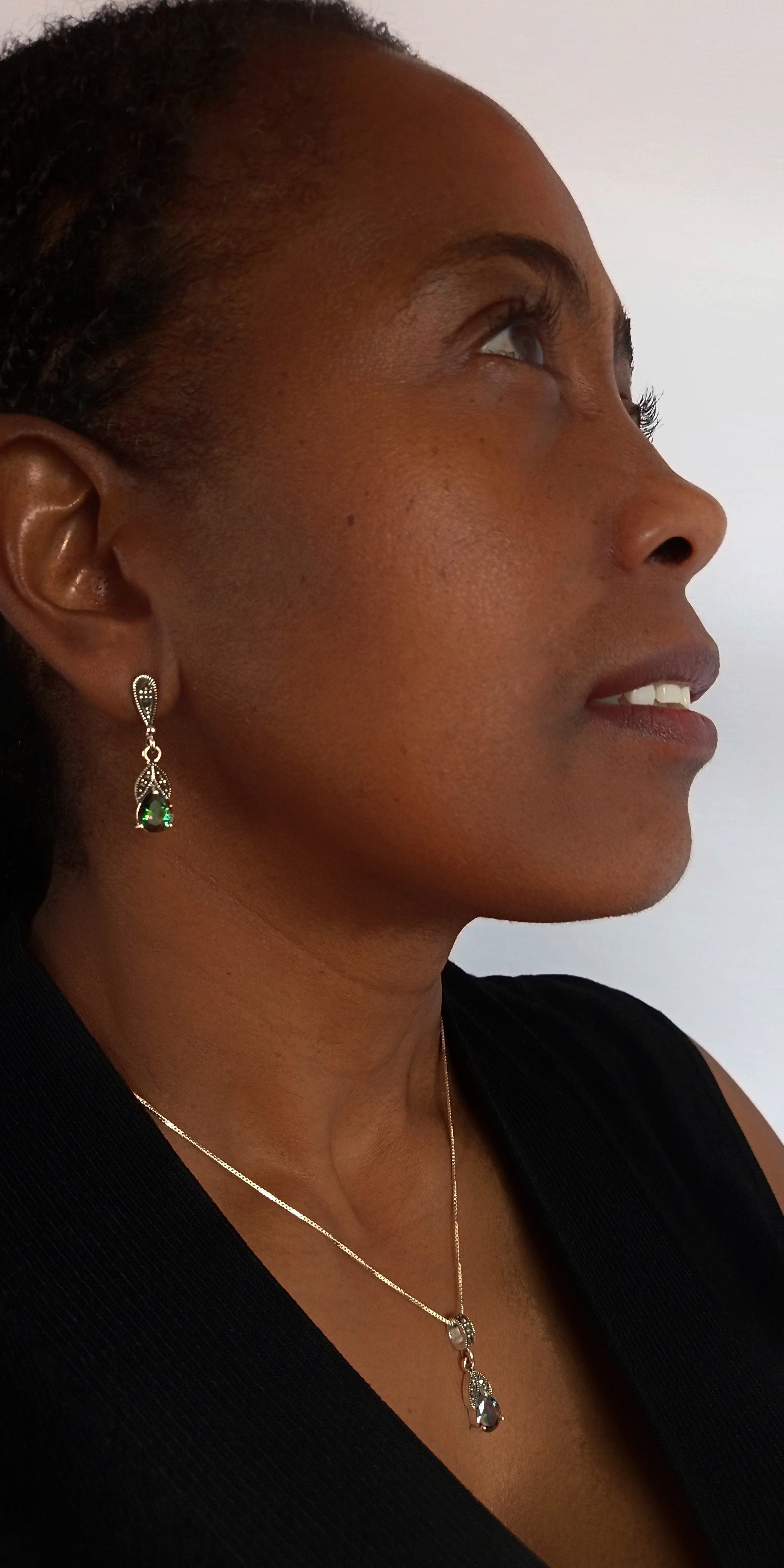 Conjunto de aretes y dije de plata 925, marquesitas y circones tornasol elegante combinación con frescura. Ideal para reunión o salida.
