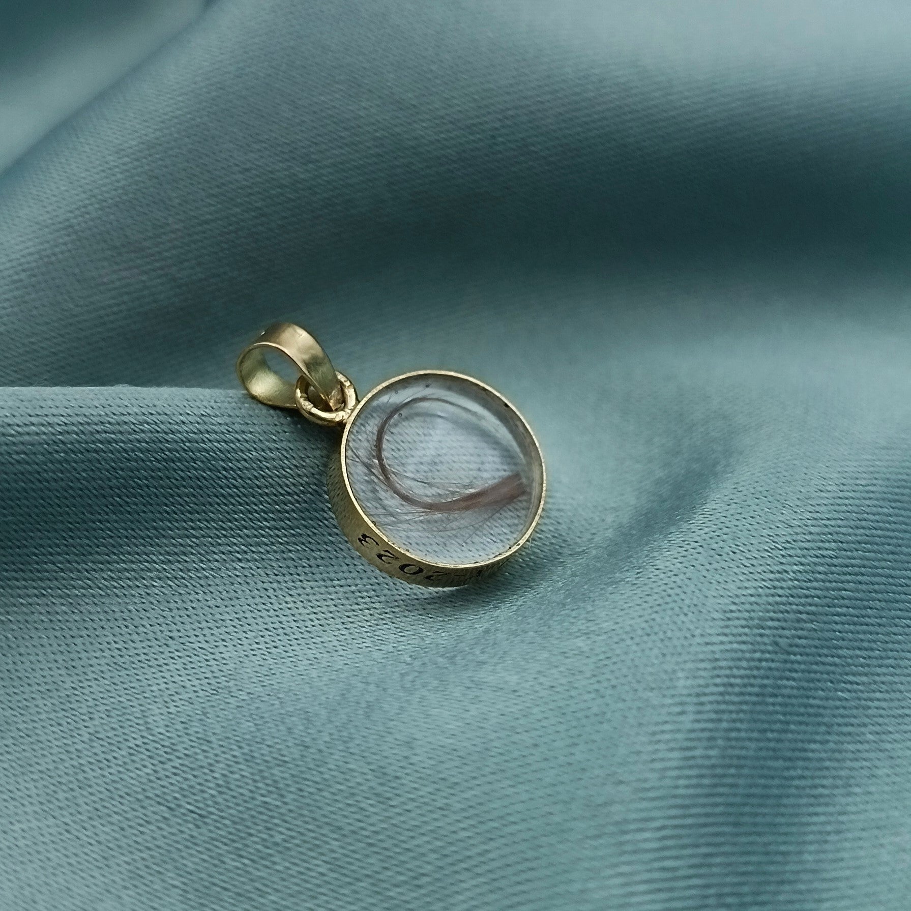 Dije de oro de 18k, encapsulado de cabello humano o mascotas.