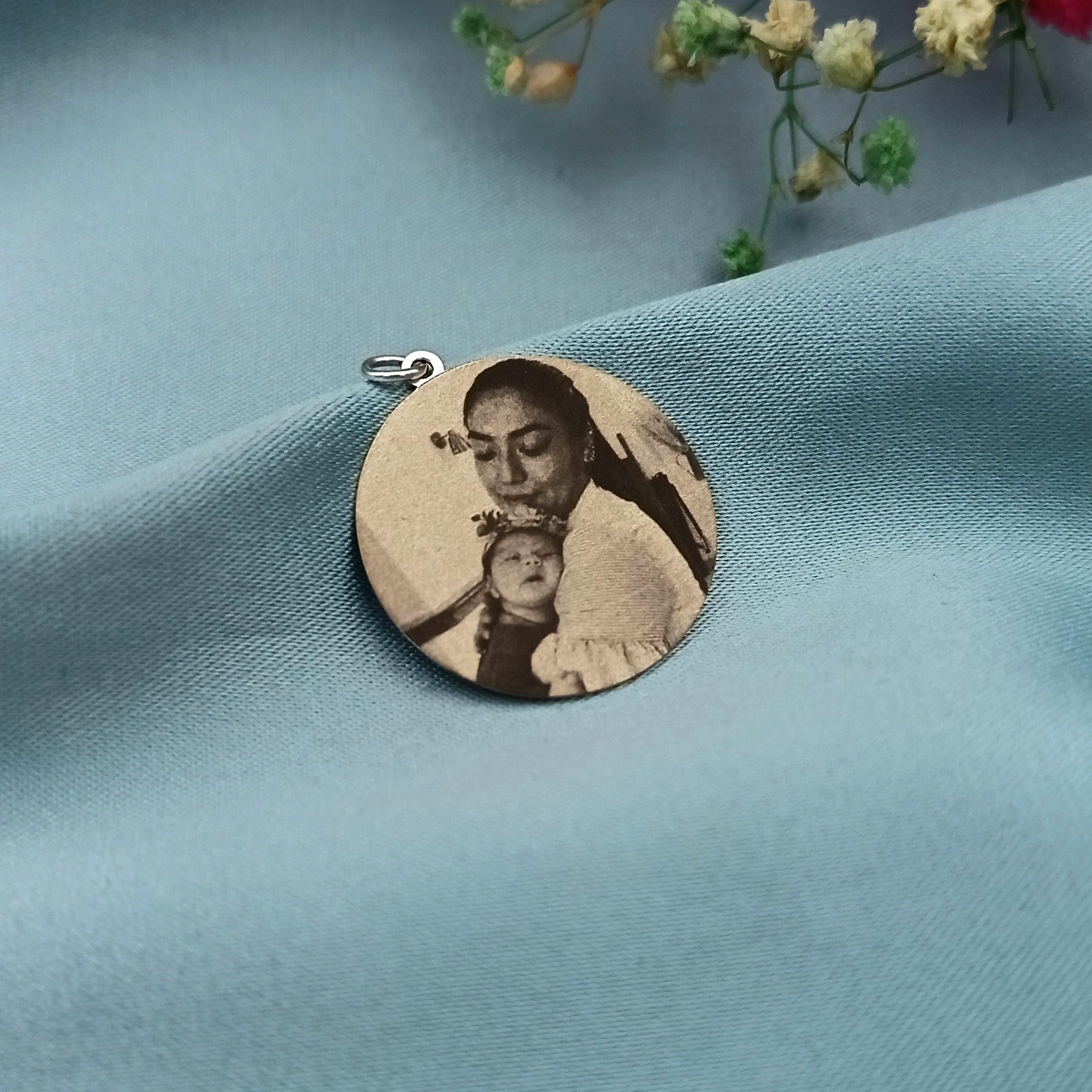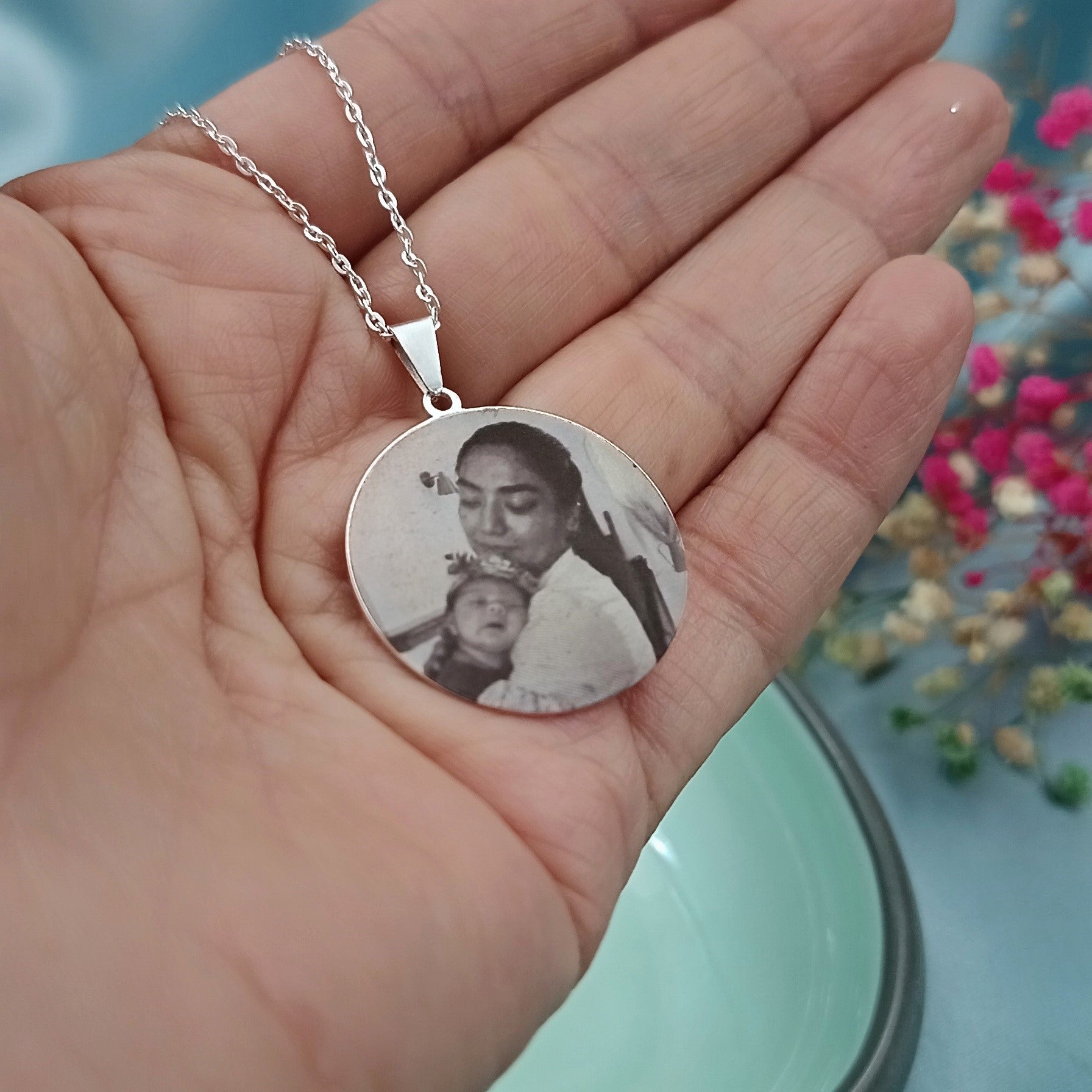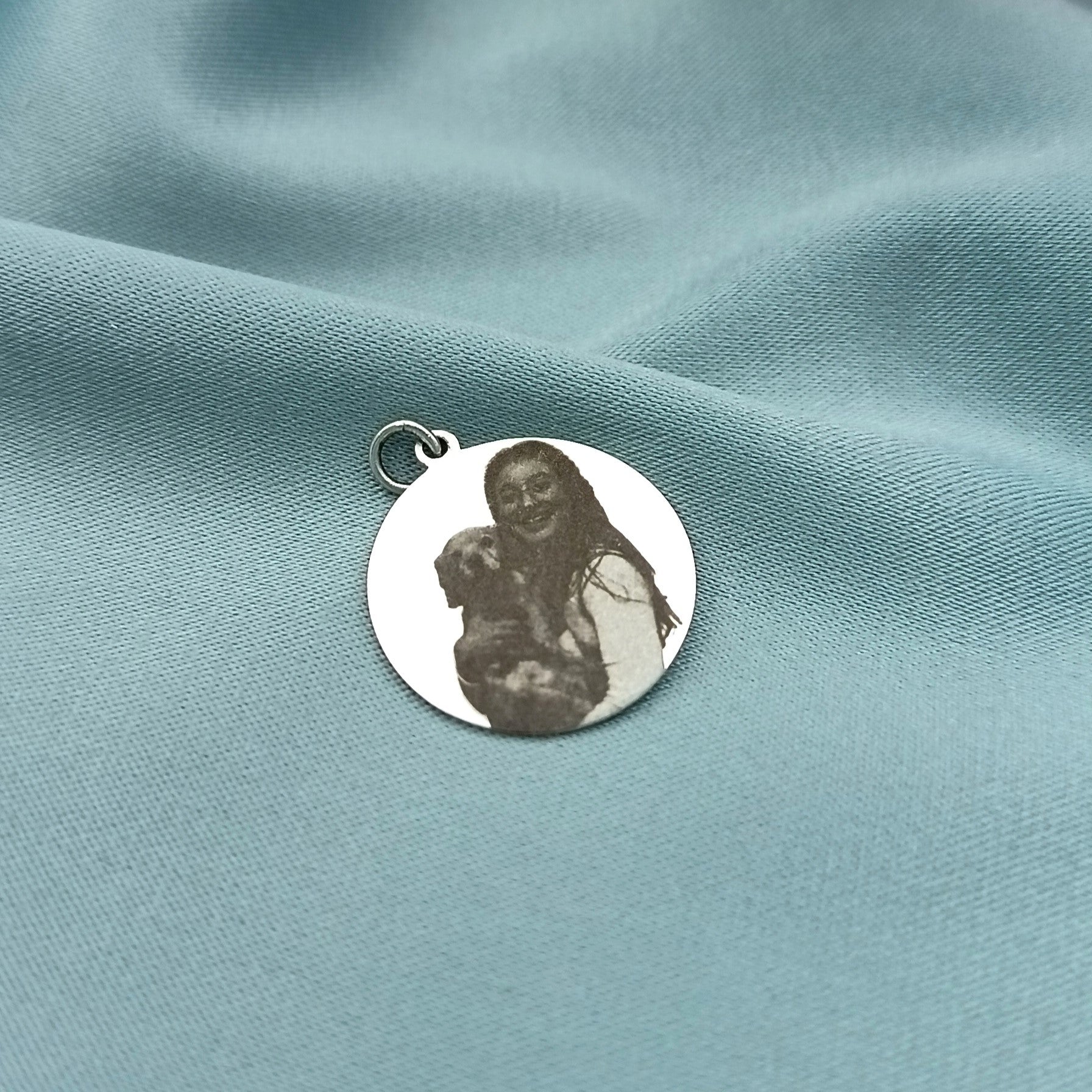 Dije de plata 925, grabado de foto a láser. Lindo Recuerdo para alguien especial. No incluye cadena.