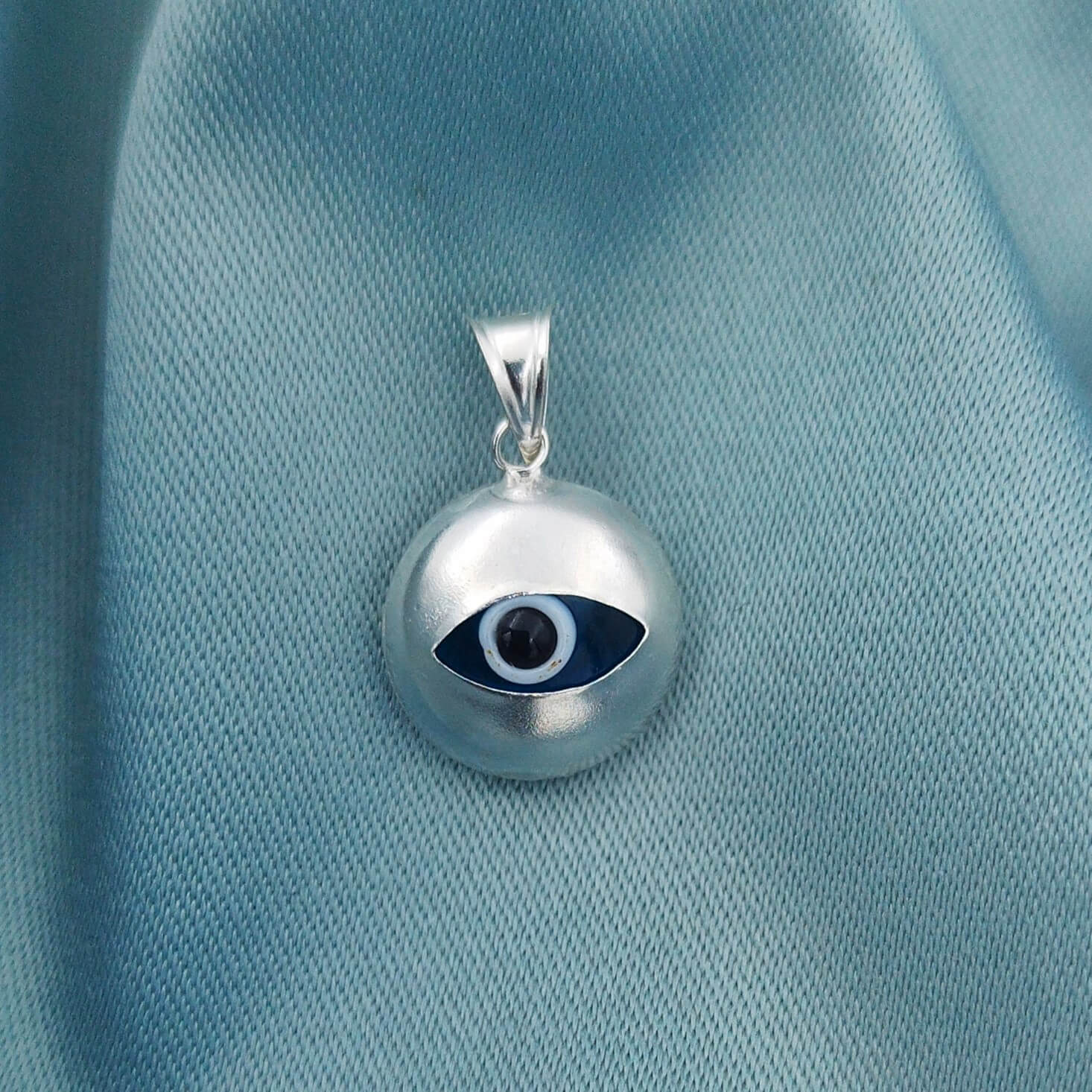 Dije protector Ojo turco celeste elaborado en cristal y plata 925.