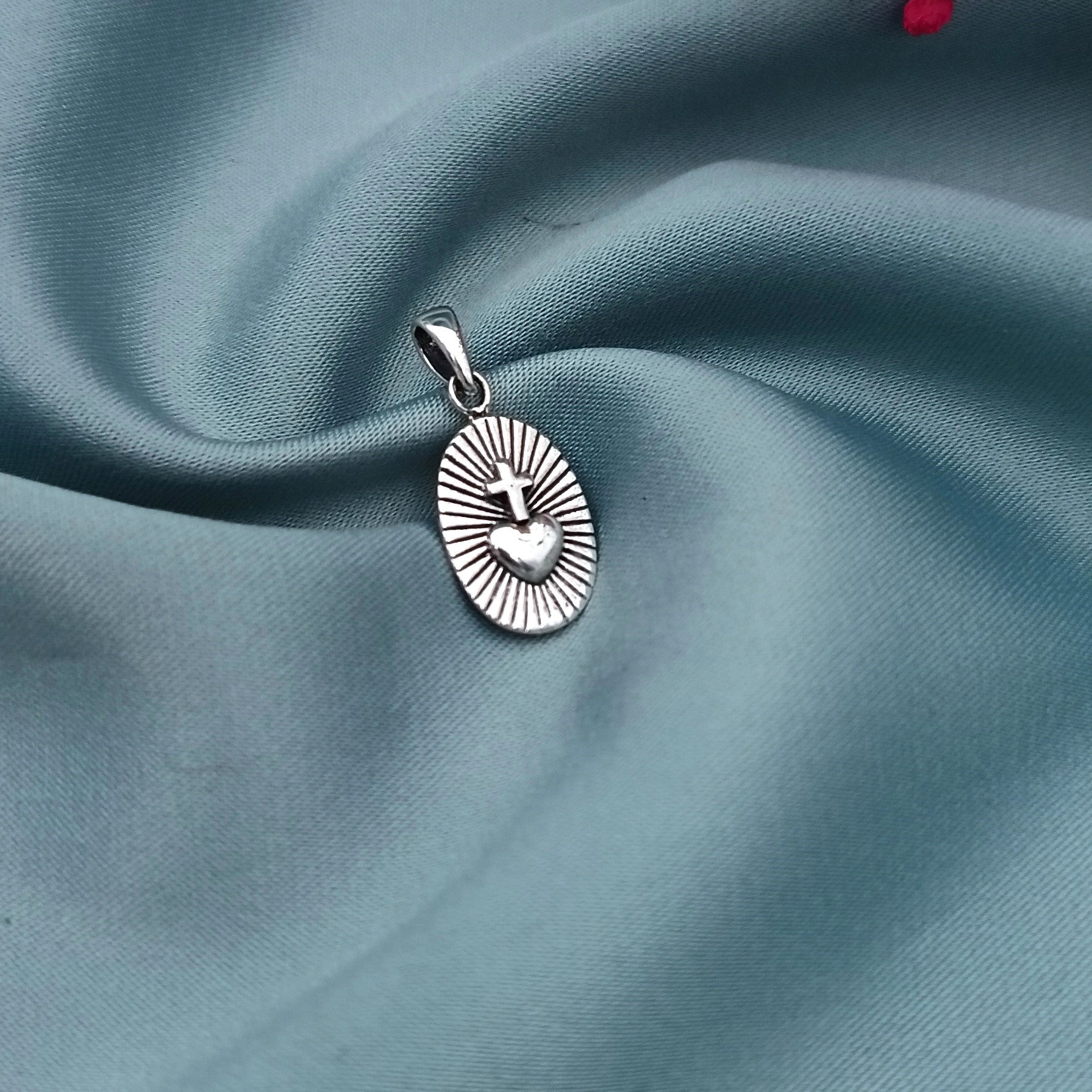 Dije de plata 925, Sagrado Corazón de Jesú. Motivo religioso católico.