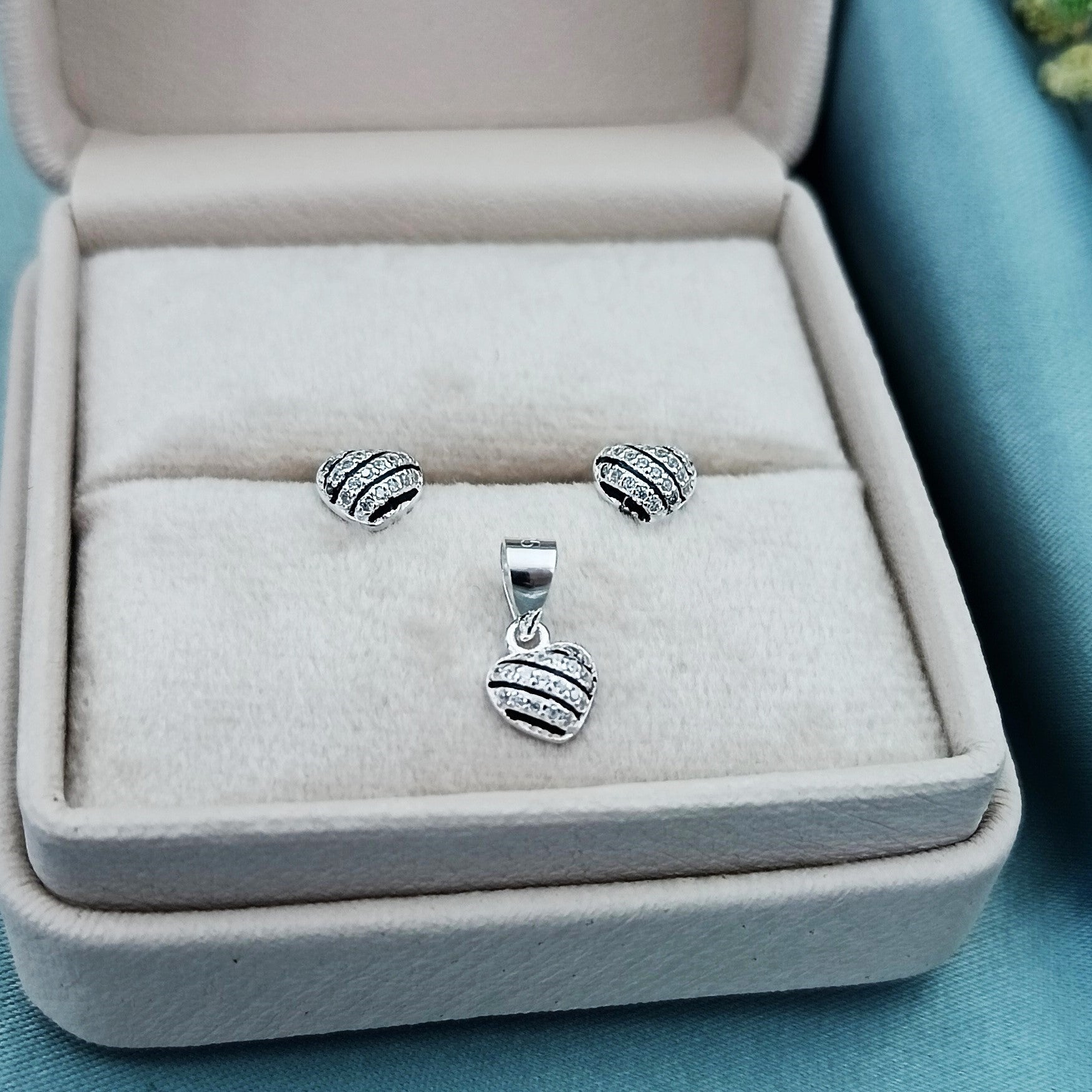 Conjunto de aretes y dije de plata 925, minnie corazones; ideales para regalar a tu pareja.