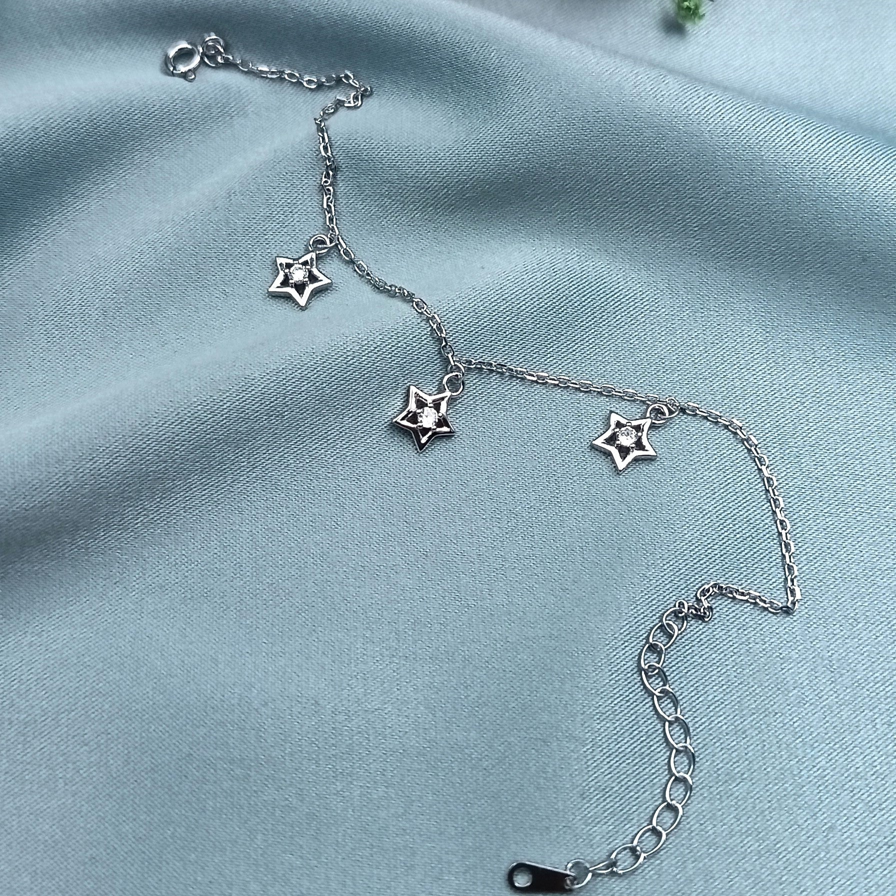 Pulsera de plata 925 con baño de oro blanco. Detalle de estrellas símbolo de luz, guía y esperanza.