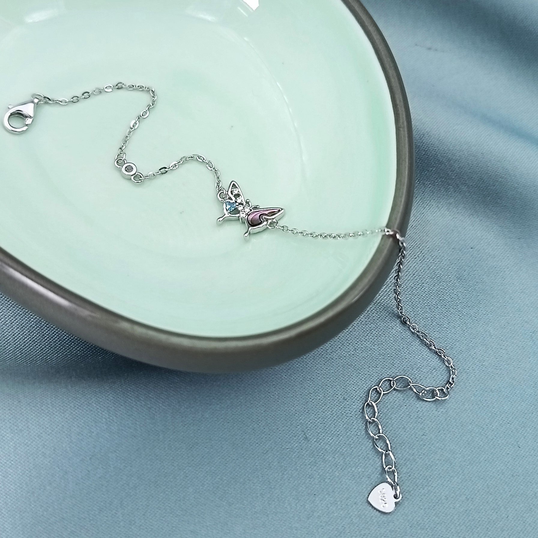 Pulsera de plata 925, nácar y baño de oro blanco. Representa transformación , libertad y renacimiento.